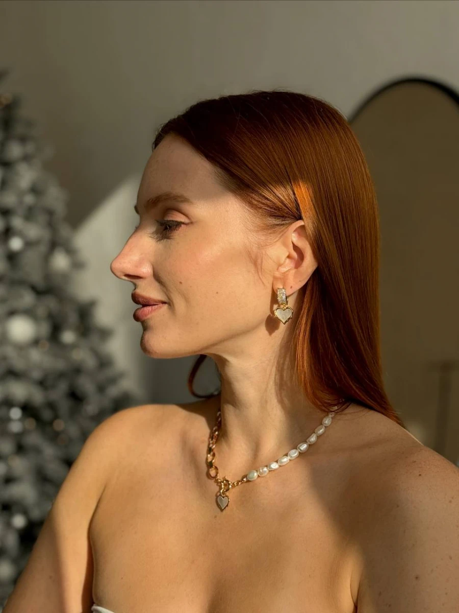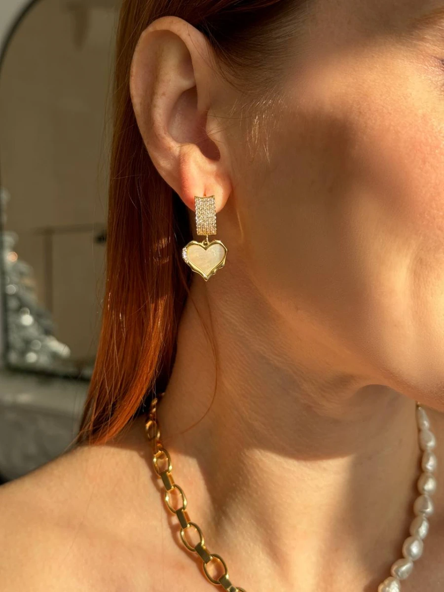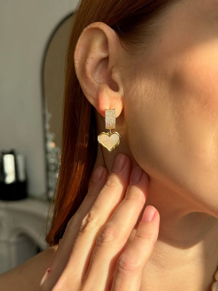Сережки Heart Vision — це ніжність і вишуканість у кожній деталі. Виготовлені з якісного медсплаву з позолотою та доповнені елегантною вставкою з перламутру, ці сережки надають образу тепла та романтики. Heart Vision підкреслюють вашу чуттєвість і додають особливого сяйва у будь-якій ситуації.