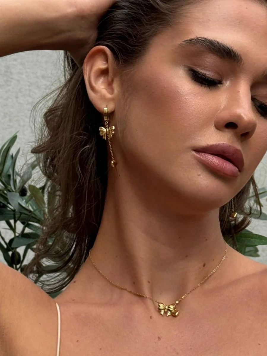 "Сережки Little Bow" - Чарівні сережки з позолотою, що підкреслять вашу красу та вишуканість! Виготовлені з медсплаву, ці сережки мають покриття позолоти, яке надає їм елегантного блиску та стійкості до тьмяніння. Їх неймовірний дизайн робить їх універсальним аксесуаром, який підійде як для повсякденного носіння, так і для особливих випадків.