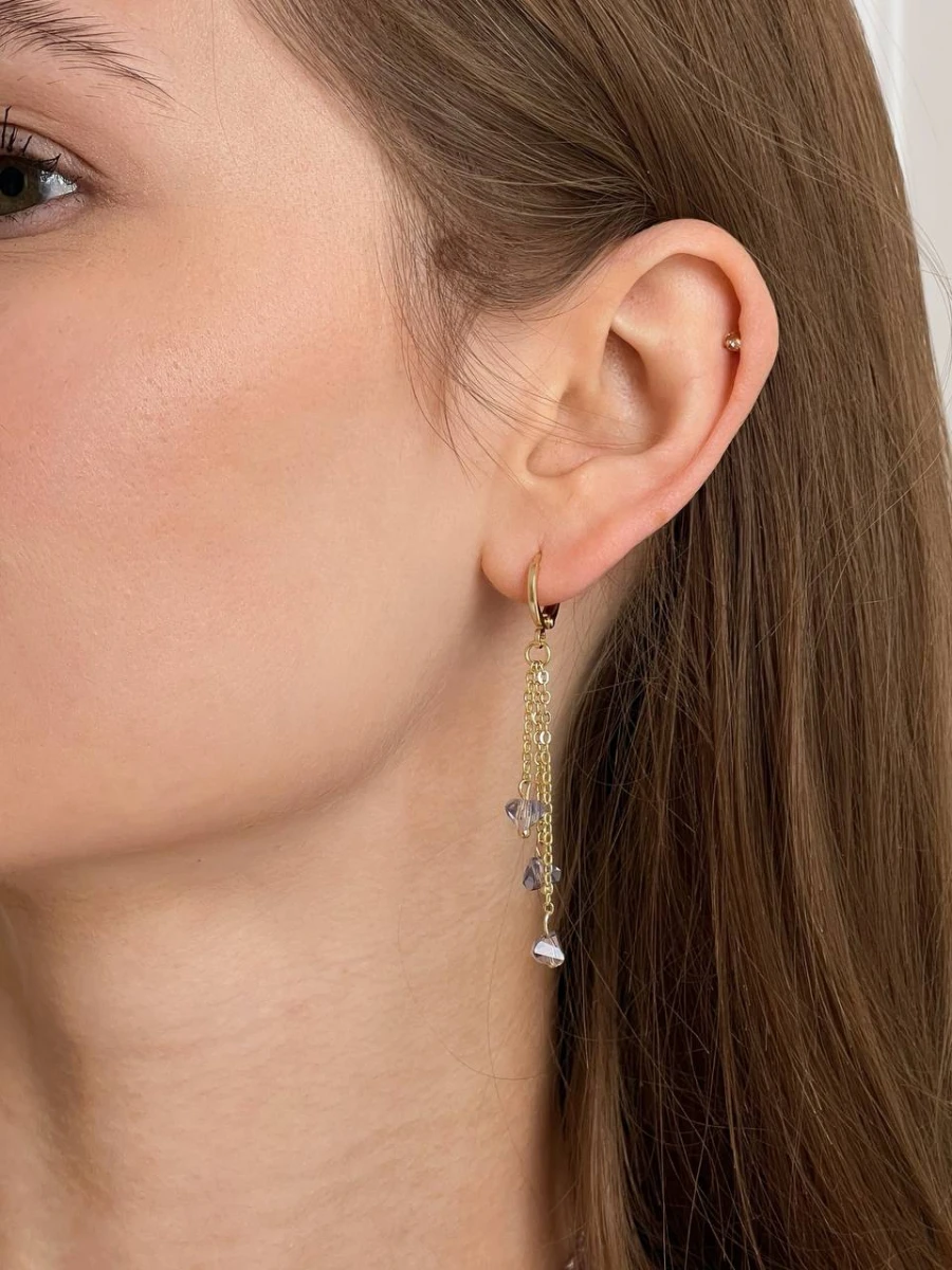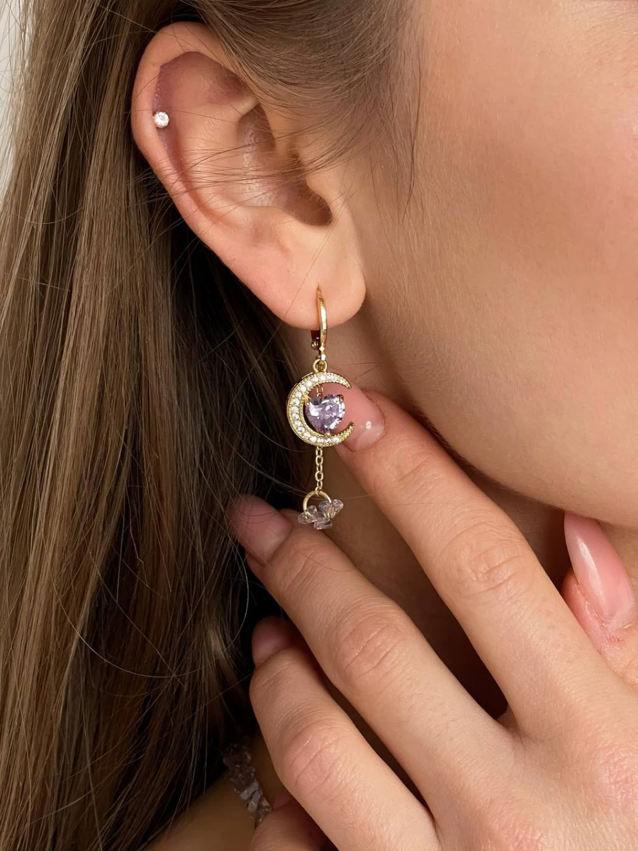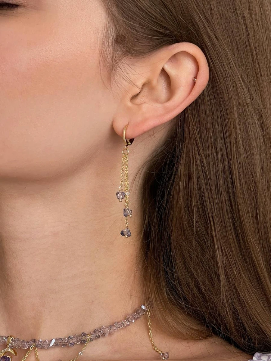Вишукані сережки "Magic Purple" стануть вашим улюбленим акцентом. Виготовлені з медичного сплаву з позолотою, прикрашені перлами, блискучими фіанітами та витонченими скляними вставками, вони ідеально доповнять ваш образ. Ці сережки об'єднують елегантність і чарівність, щоб ви завжди сяяли.