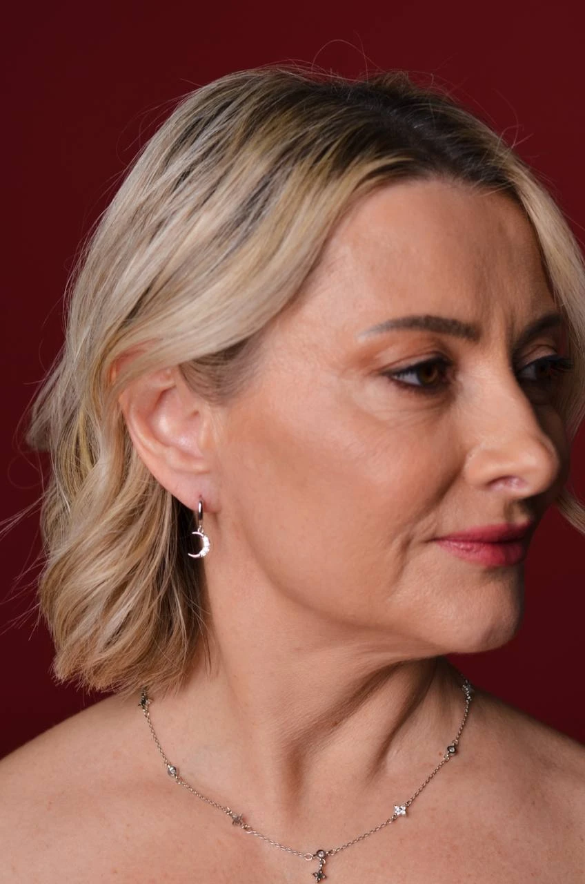 Елегантні сережки "Moonshine" стануть вишуканим доповненням до вашого образу. Виготовлені з якісного медсплаву, покриті шаром срібла та оздоблені сяючими фіанітами, вони втілюють гармонію стилю та витонченості.