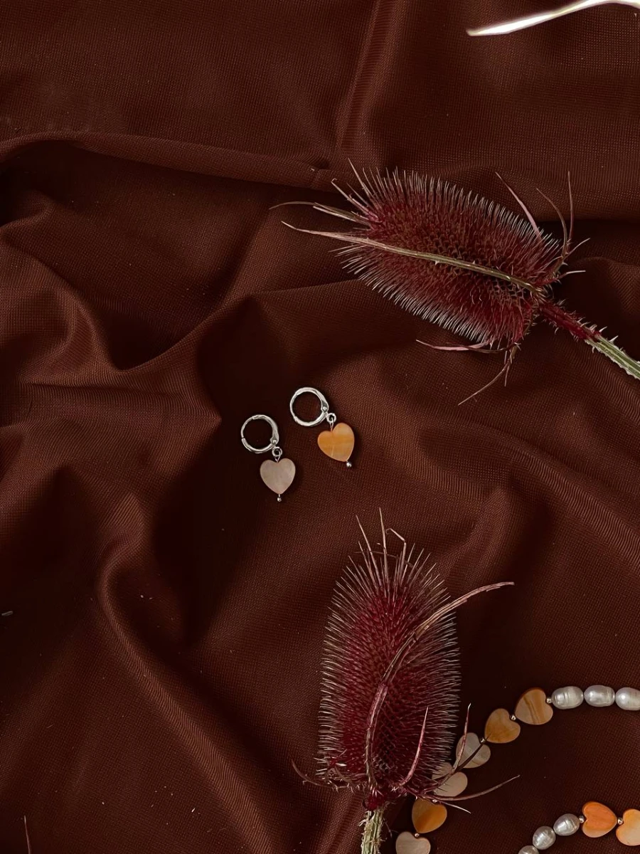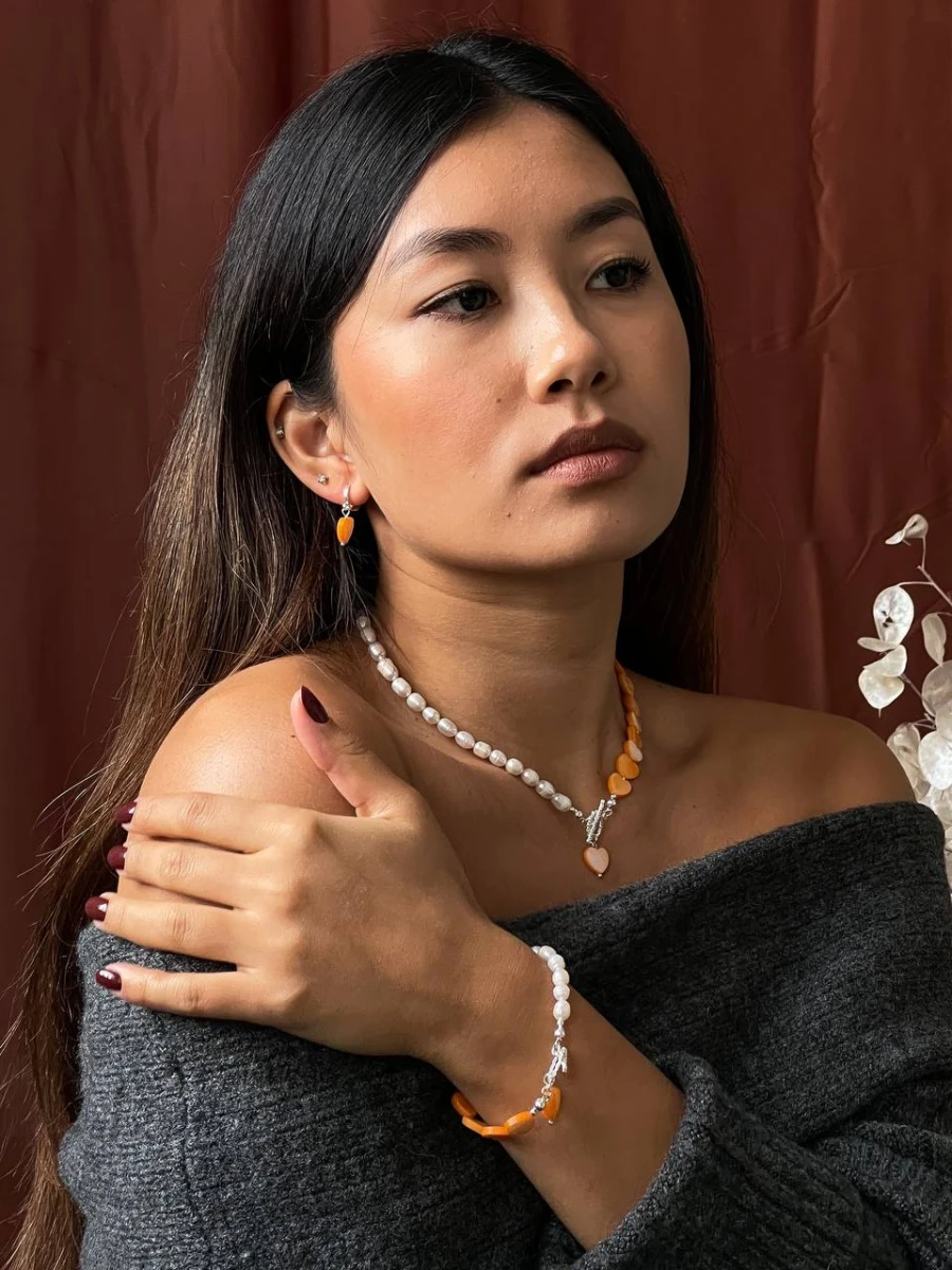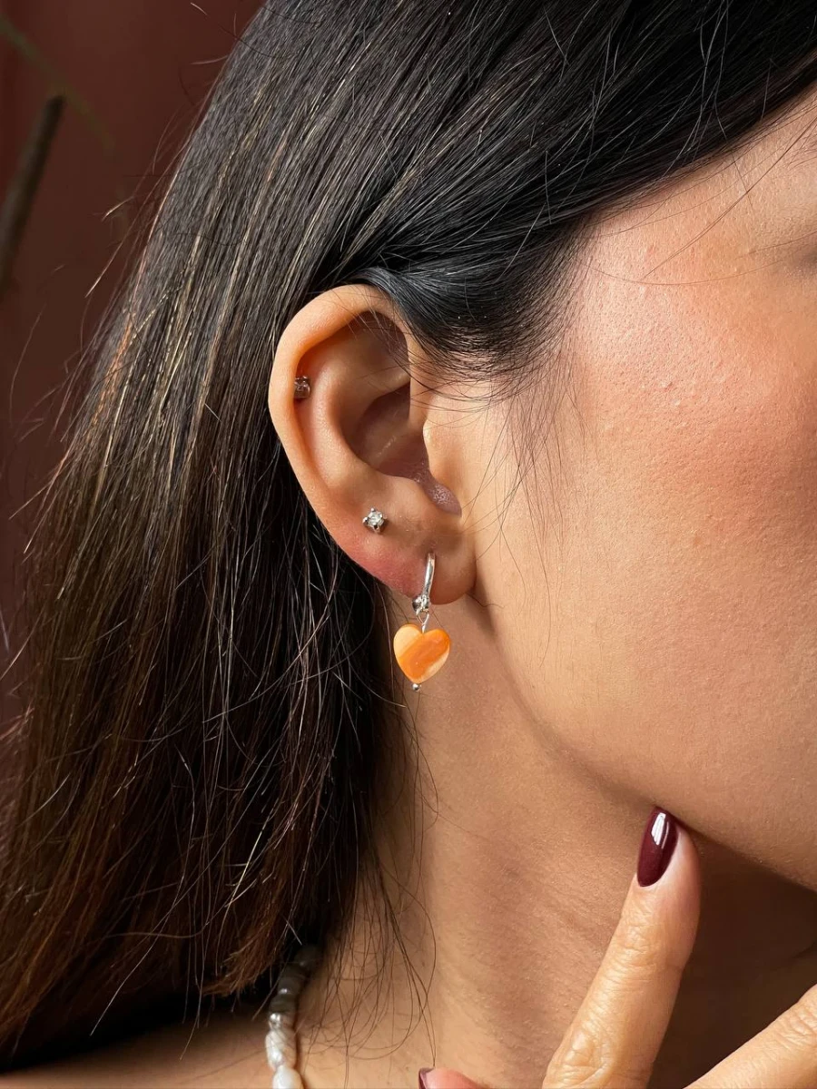 Сережки "Orange Vita" – це яскравий акцент у вашій колекції прикрас. Виготовлені з перламутрових сердець, покритих сріблом, вони випромінюють ніжність та вишуканість. Додайте нотку свіжості та елегантності до свого образу.