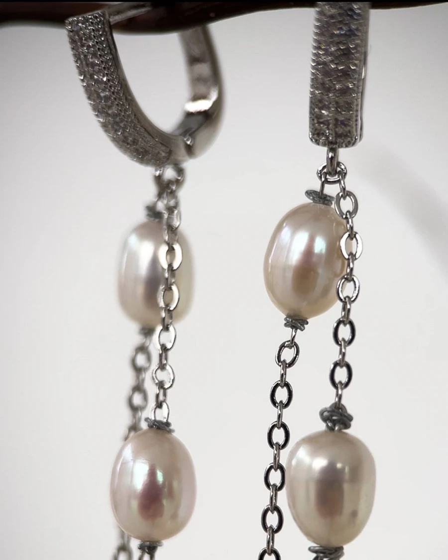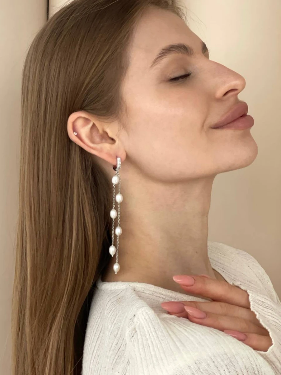 Елегантні сережки, виготовлені з медичного сплаву з ніжним срібним покриттям. Інкрустовані сяючими фіанітами та доповнені перлами преміум-класу. Англійська застібка забезпечує комфорт і надійність. Ідеальний вибір для витонченого образу.