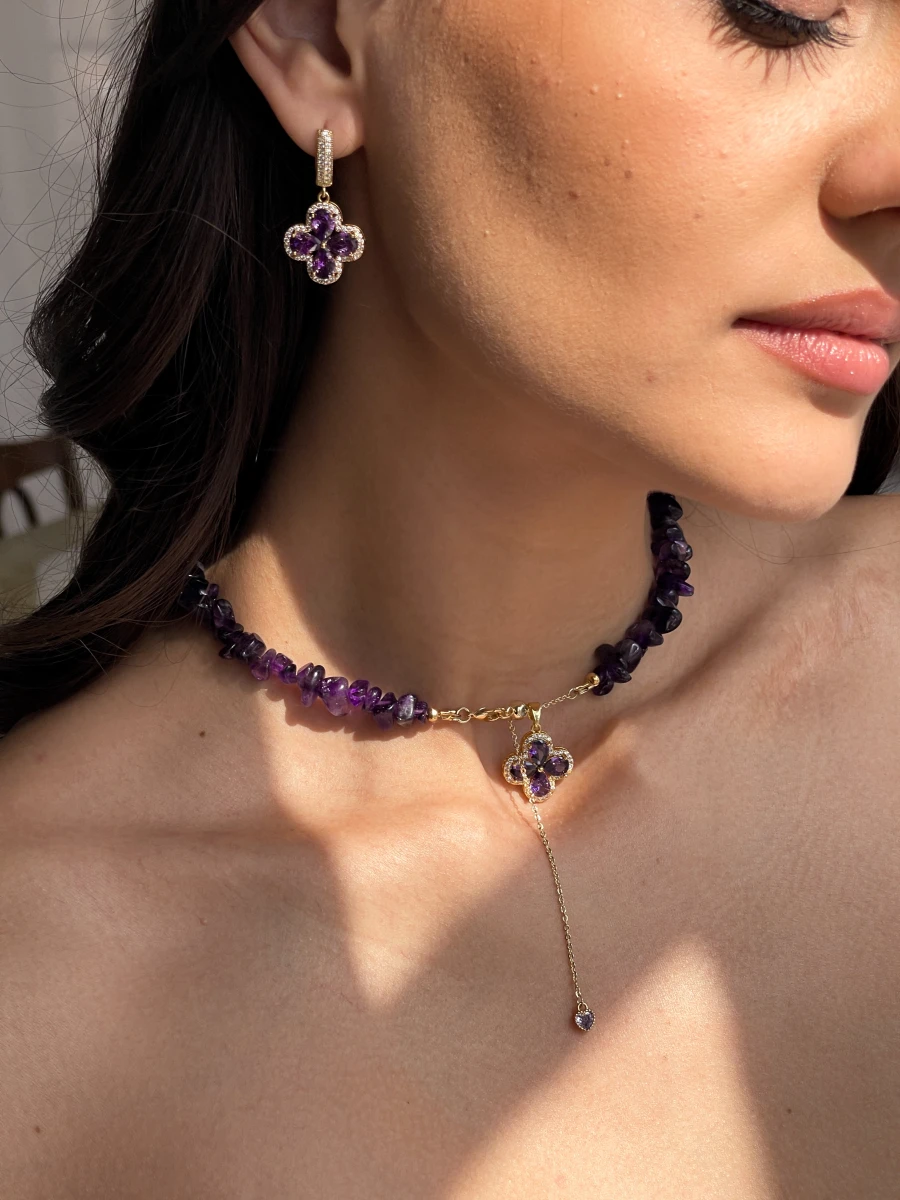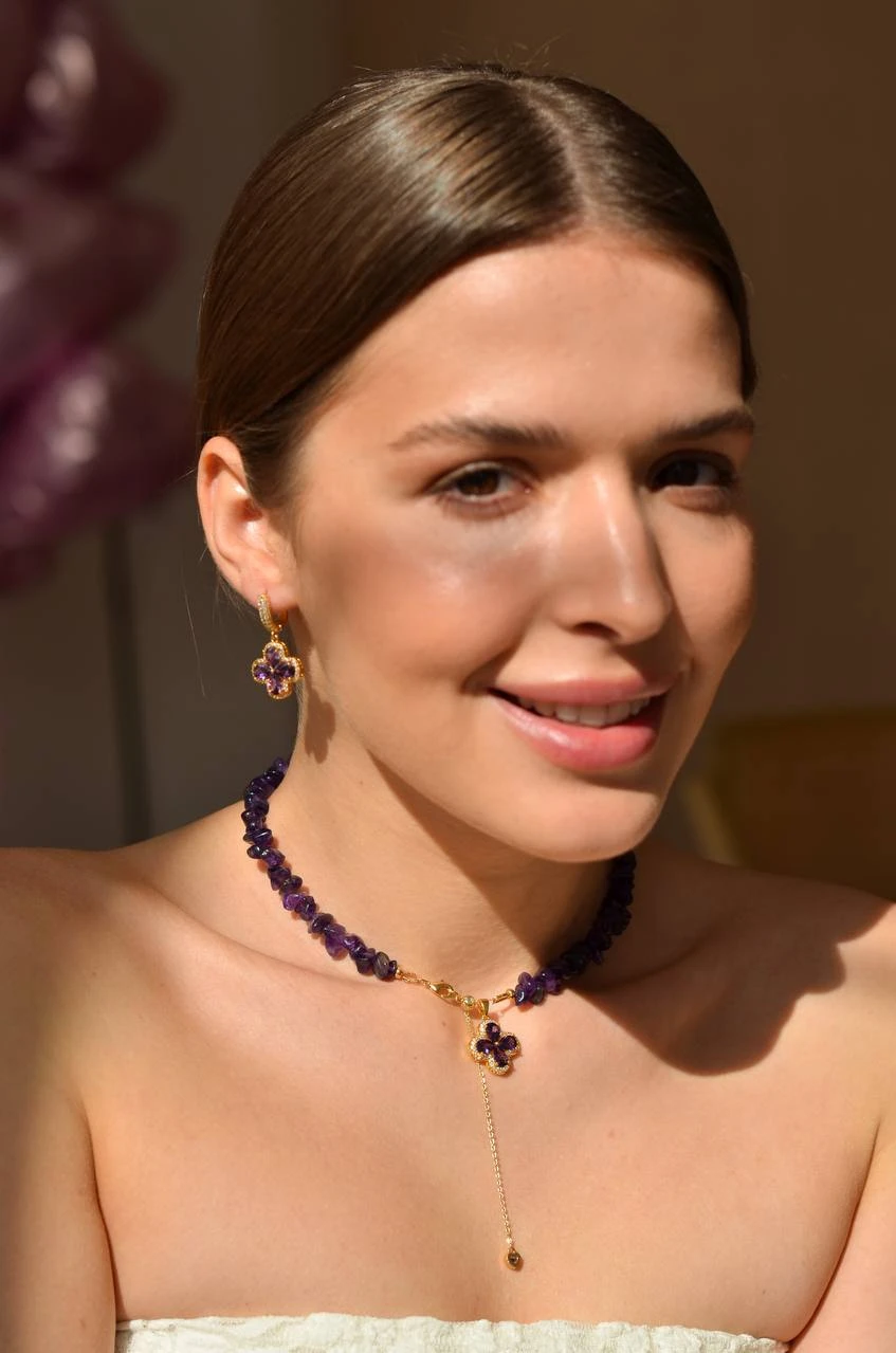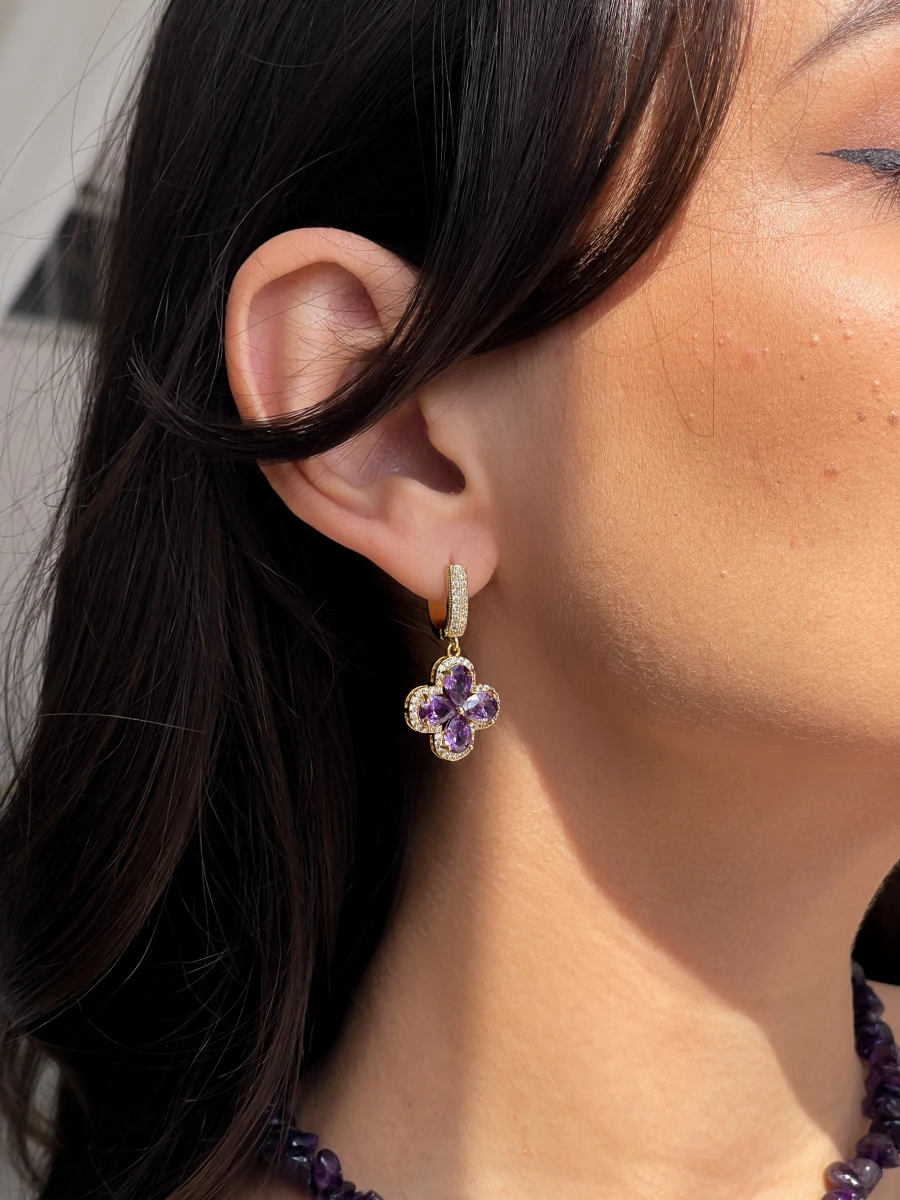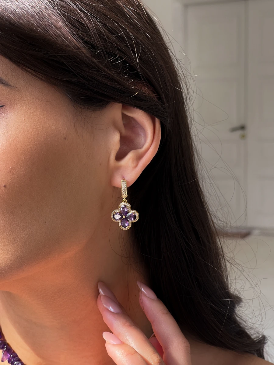 Сережки "Purple Clover" — елегантний аксесуар, створений для стильних і впевнених у собі жінок. Виготовлені з медсплаву з позолотою, вони чудово поєднують сучасний дизайн та вишуканість. Вставки з фіанітів додають блиску, підкреслюючи красу та елегантність кожної жінки. Ідеальний вибір для будь-якої події.