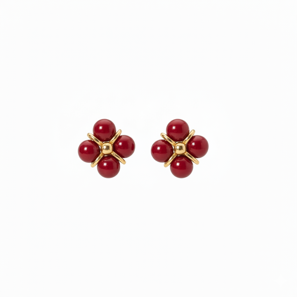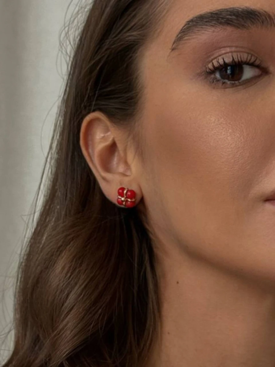 Відчуйте себе щасливою з витонченими сережками "Red Fortune", виготовленими з медсплаву, позолоти та корала. Цей витвір мистецтва поєднує в собі елегантність, багатство та сяйво.