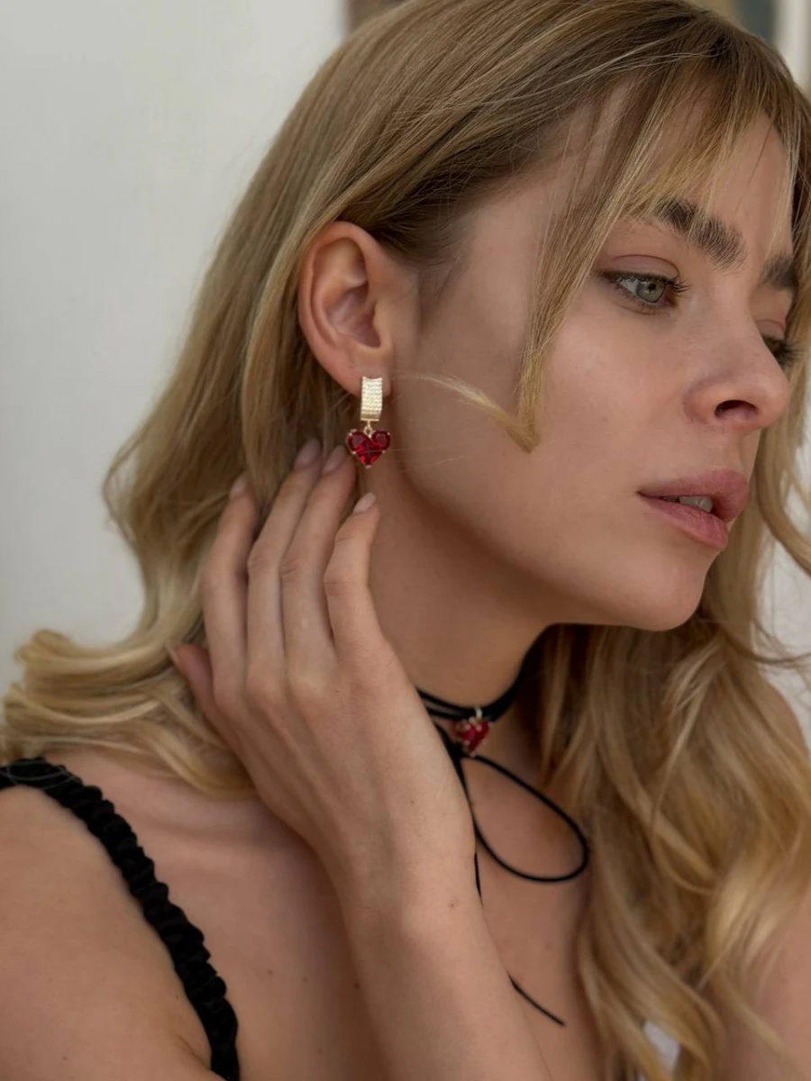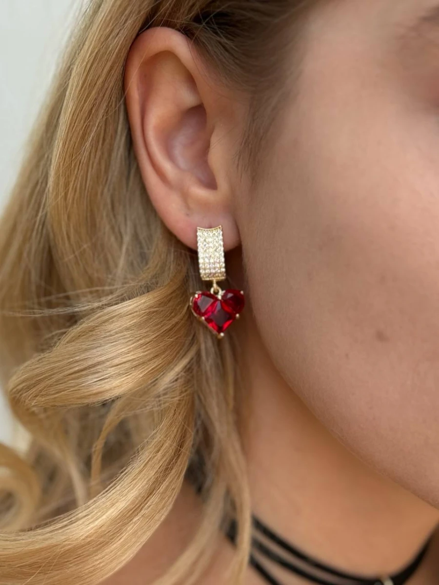 Чарівні сережки "Red Heart" - це вишуканий аксесуар, який підкреслить вашу красу та неповторний стиль. Виготовлені з ювелірного скла, медсплаву, позолоти та фіанітів, ці сережки стануть чудовим доповненням до вашого образу.