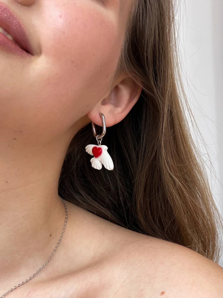 Виготовлені з медсплаву зі срібним покриттям та оздоблені вручну з полімерної глини, ці сережки втілюють символіку ніжної душі й вірного серця. Ідеально підходить для тих, хто цінує оригінальні прикраси з глибоким змістом.