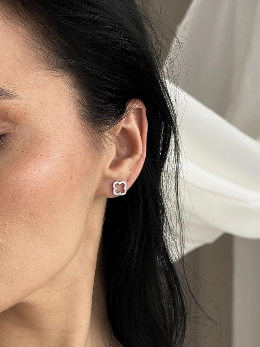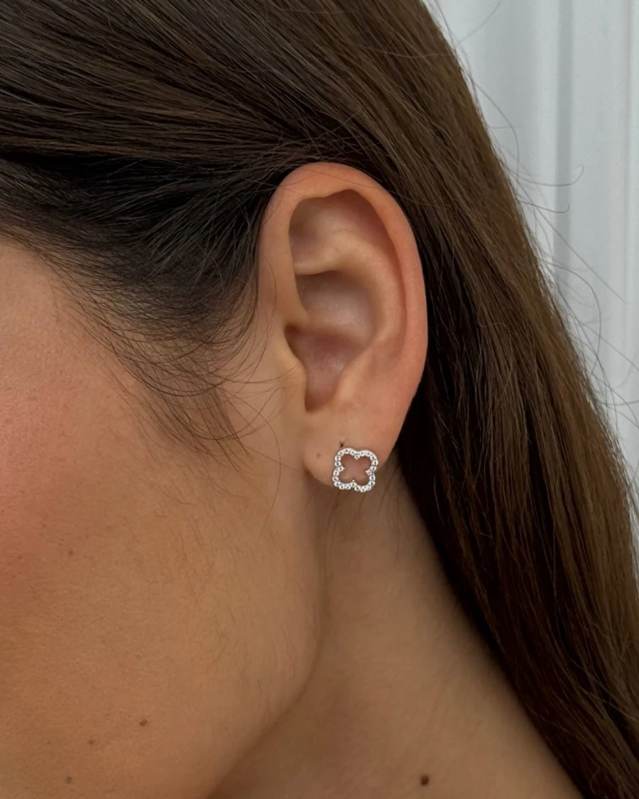 Ці витончені сережки стануть вашим улюбленим аксесуаром. Виготовлені з медсплаву з срібним покриттям та оздоблені фіанітами, вони додадуть вашому образу елегантності та сяйва.