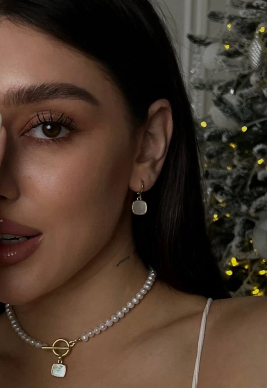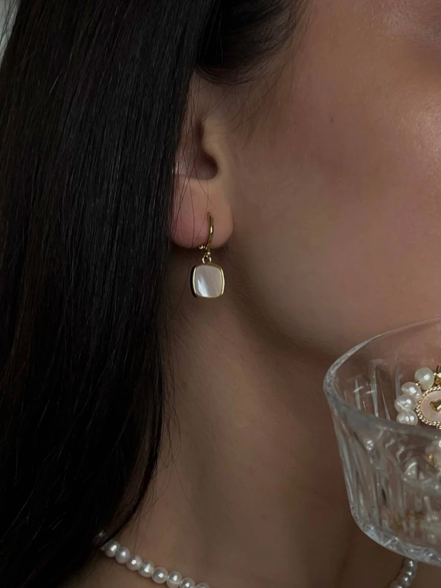 Сережки "Simple" - це витончена та елегантна прикраса. Вони виготовлені з медсплаву, позолоти, перламутру та застібок кільця.