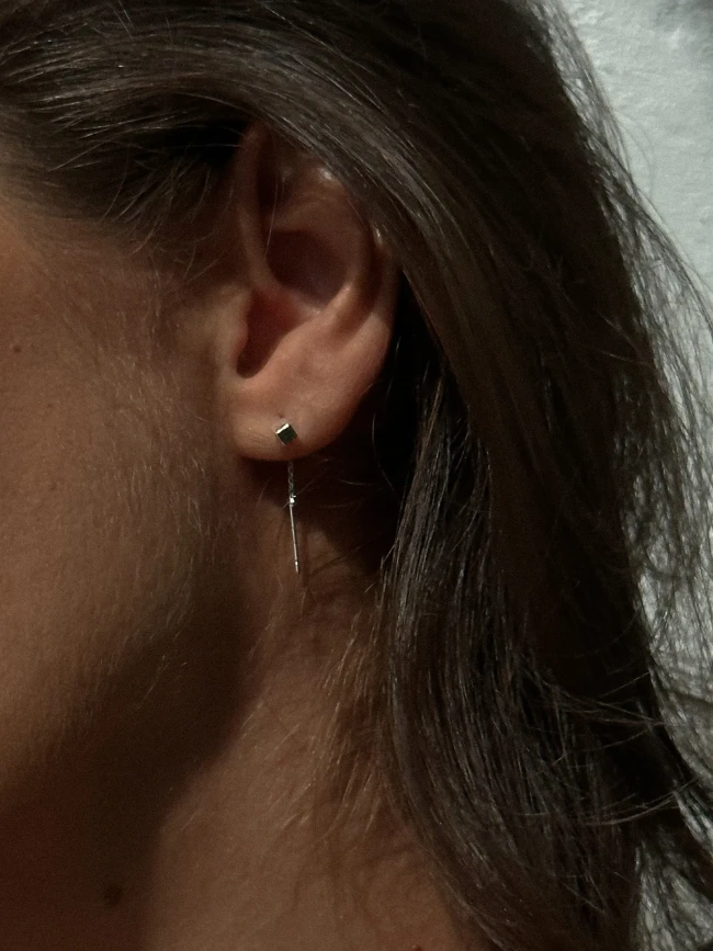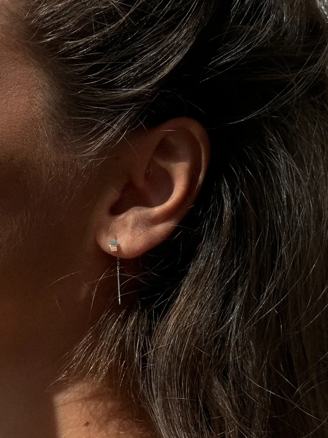 Сережки "Square" виготовлені із медсплаву та прикрашені кубиком та ланцюжком. Ці стильні сережки мають застібку типу пусет і виглядають надзвичайно елегантно.