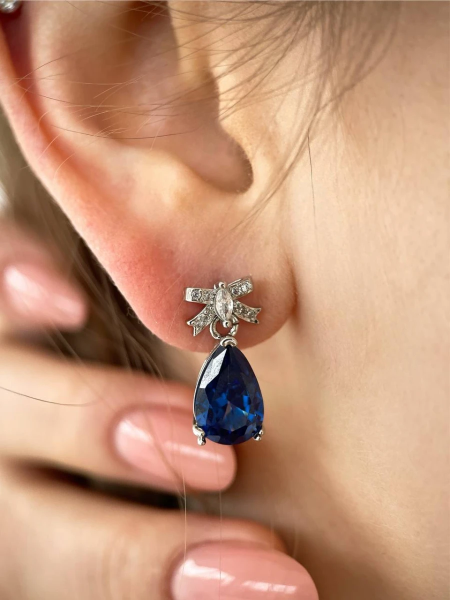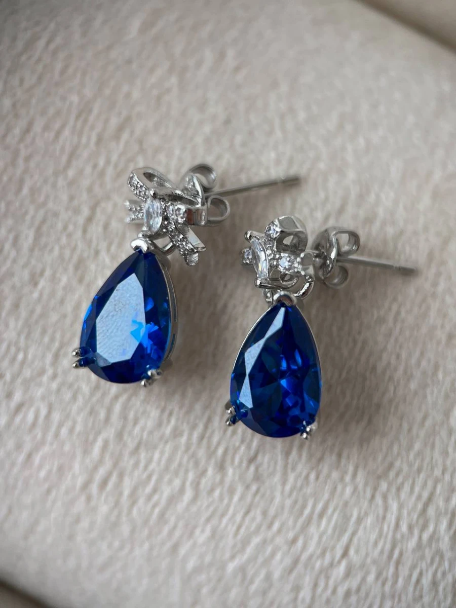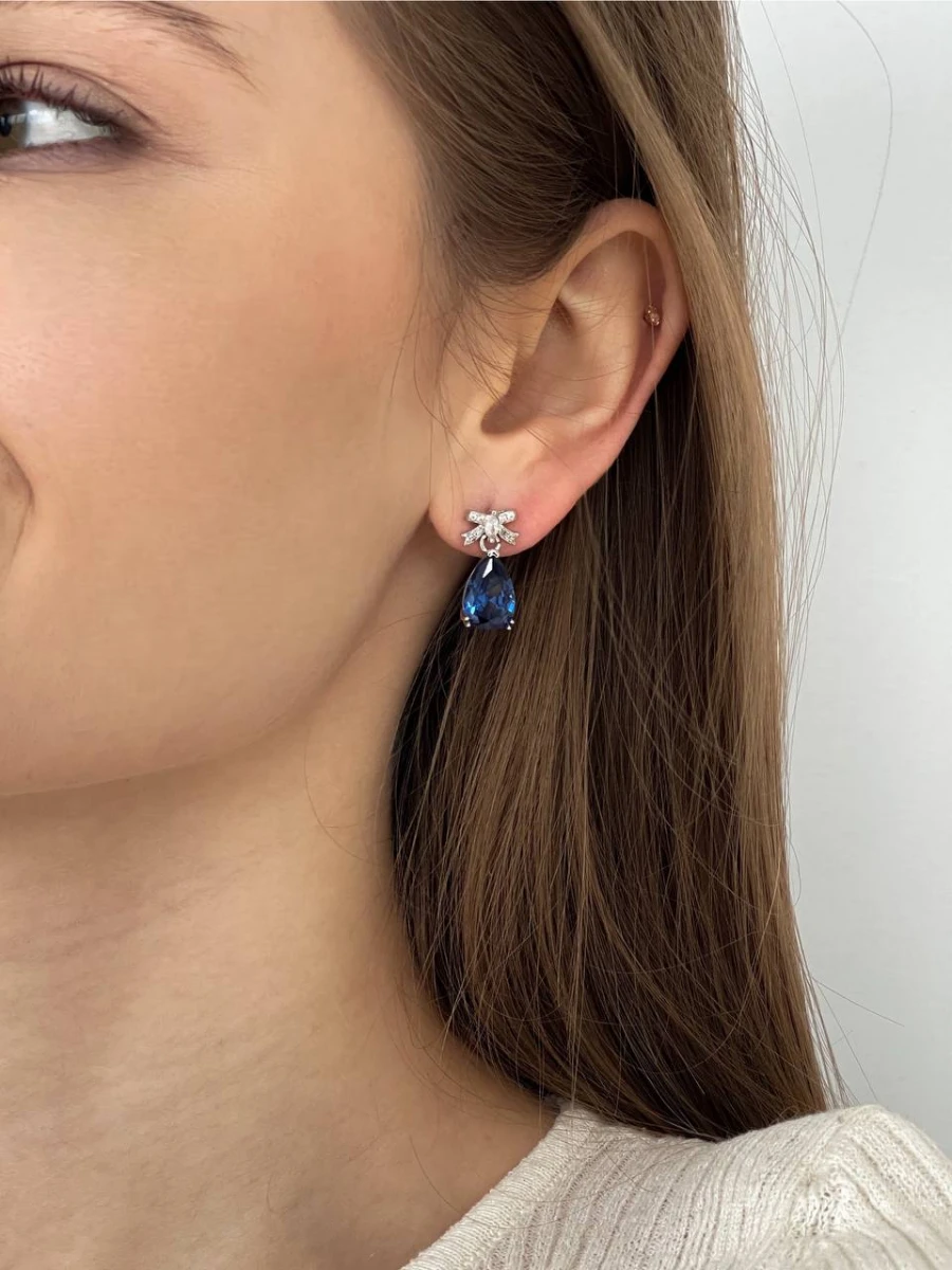 Елегантні сережки "Steel Blue" виготовлені з якісного медичного сплаву, покриті сріблом для довговічності та розкішного вигляду. Вставка з фіанітів надає їм ніжного блиску, додаючи витонченості кожному образу. Зручна застібка-пусет забезпечує комфортне носіння протягом усього дня.