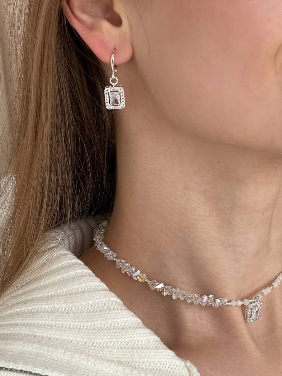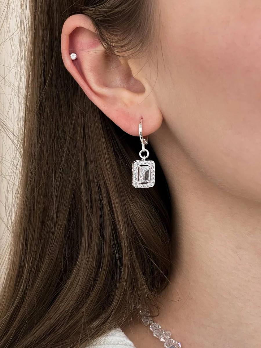Сережки Steel Diamond – стильне поєднання мінімалізму та блиску. Виготовлені з медсплаву зі срібним покриттям, вони вишукано доповнені сяючими фіанітами. Ця прикраса ідеально пасує як для щоденних образів, так і для особливих подій, надаючи вам витонченості та шарму.