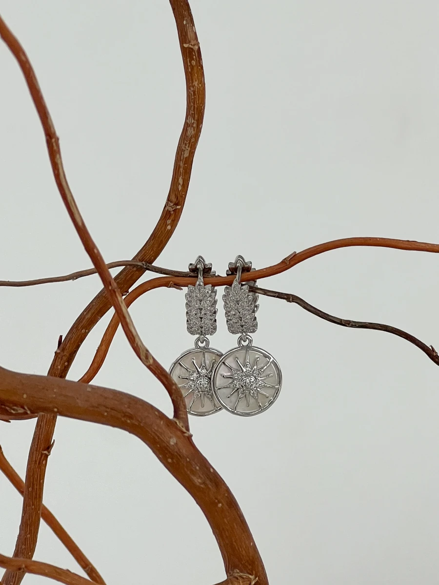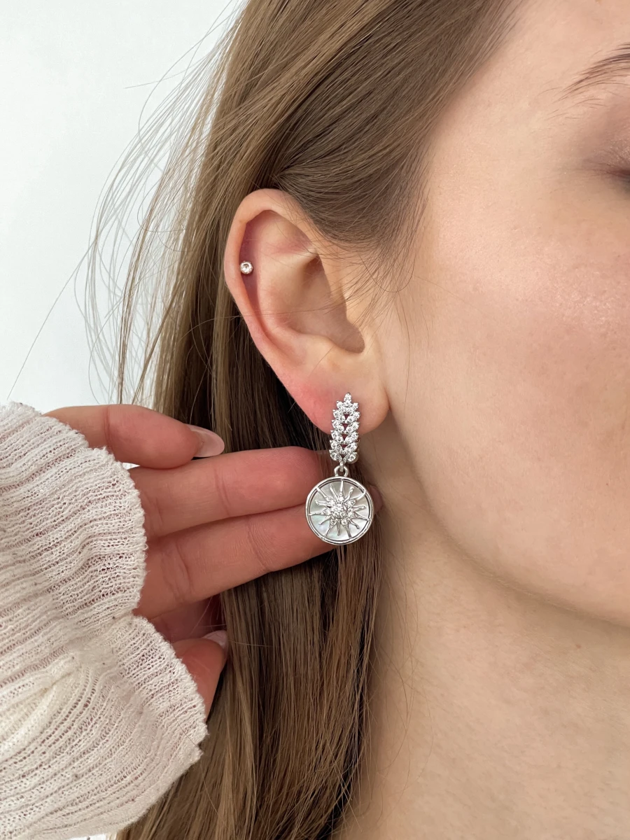 Елегантні сережки "Steel Eliza" стануть витонченим акцентом у вашому образі. Виготовлені з медсплаву, вони мають срібне покриття, яке забезпечує розкішний блиск. Декоровані сяючими фіанітами та ніжною перламутровою вставкою, ці сережки підкреслять вашу жіночність і витонченість. Ідеальний вибір для будь-якого випадку!