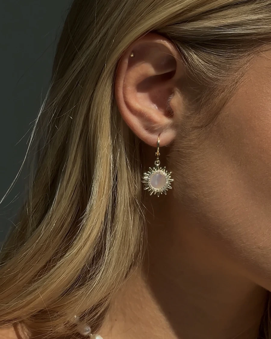 Сережки "Sunflower" - Ці витончені сережки поєднують у собі ніжне сяйво перламутру, блиск фіанітів та елегантність позолоти, створюючи справжній шедевр ювелірного мистецтва. Вони стануть чудовим доповненням до вашого образу, підкресливши вашу красу та вишуканий смак.