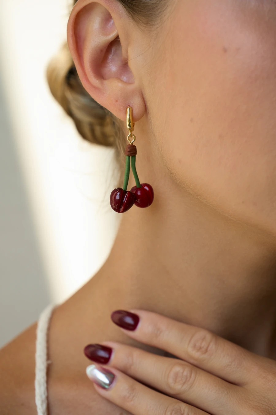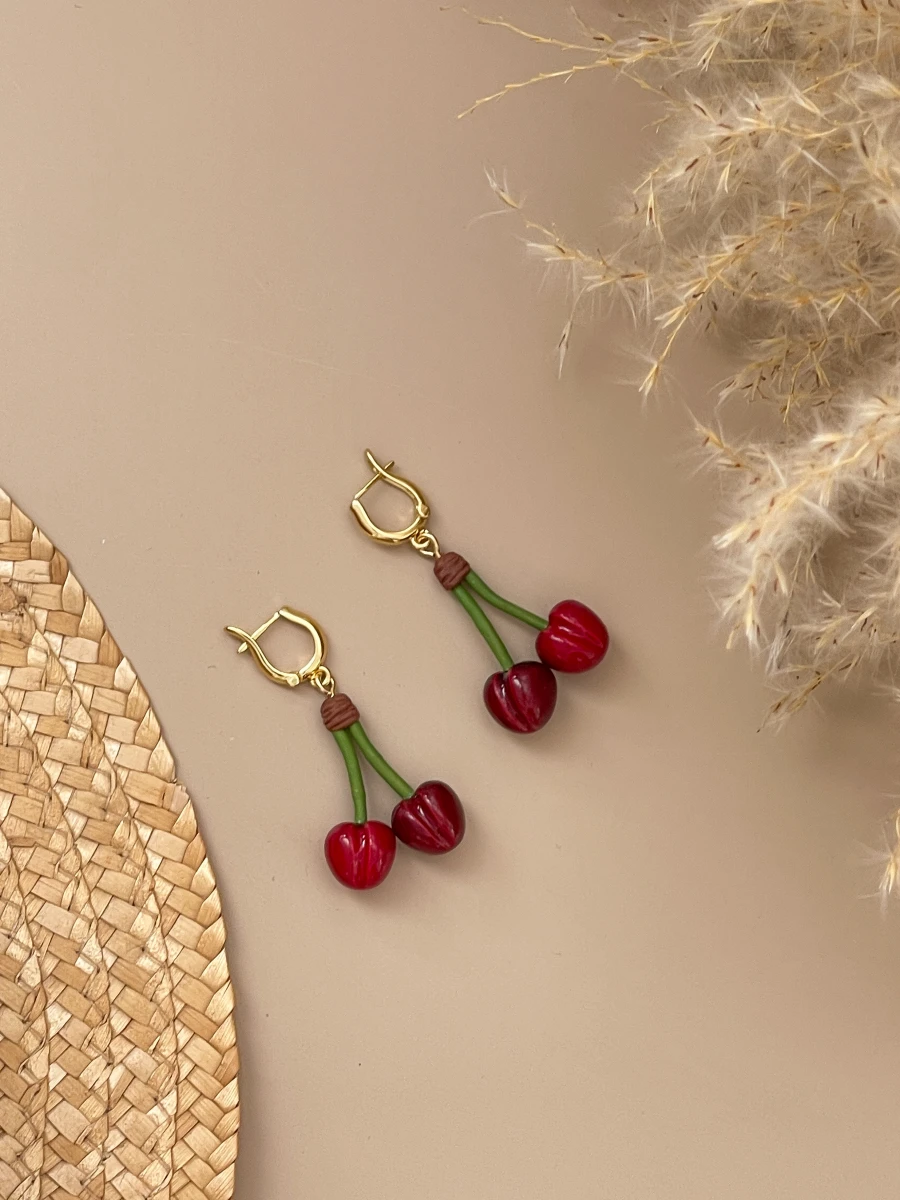 Ці сережки у формі вишень створені вручну з полімерної глини — кожна пара унікальна, як і ви. Вони легкі, зручні у носінні й водночас не залишаються непоміченими.