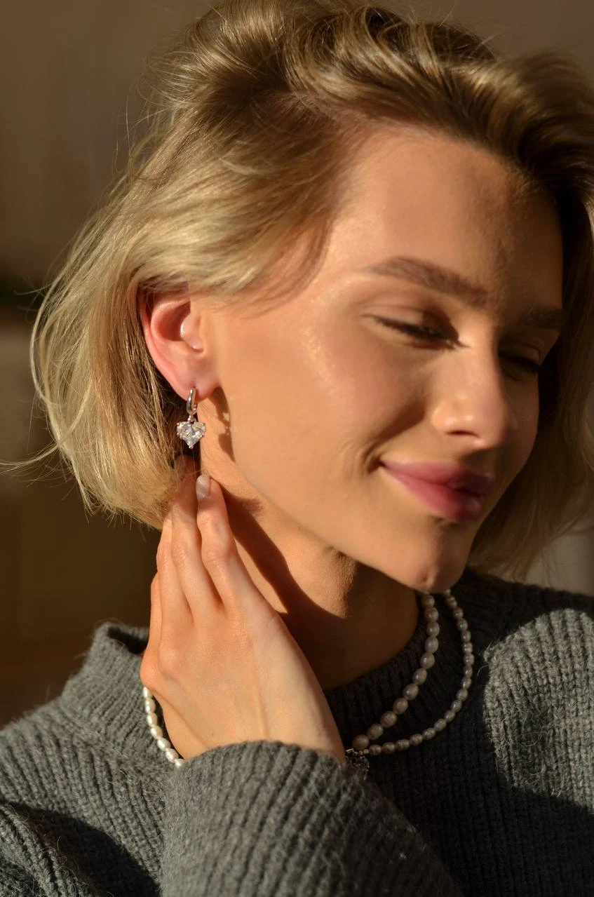 Елегантні сережки "White Silver" виготовлені з медичного сплаву, покритого сріблом, що забезпечує довговічність і блиск. Вишуканий дизайн доповнено сяйвом фіанітів, які додають розкоші кожному образу. Ідеальний вибір для повсякденного носіння або особливих моментів.