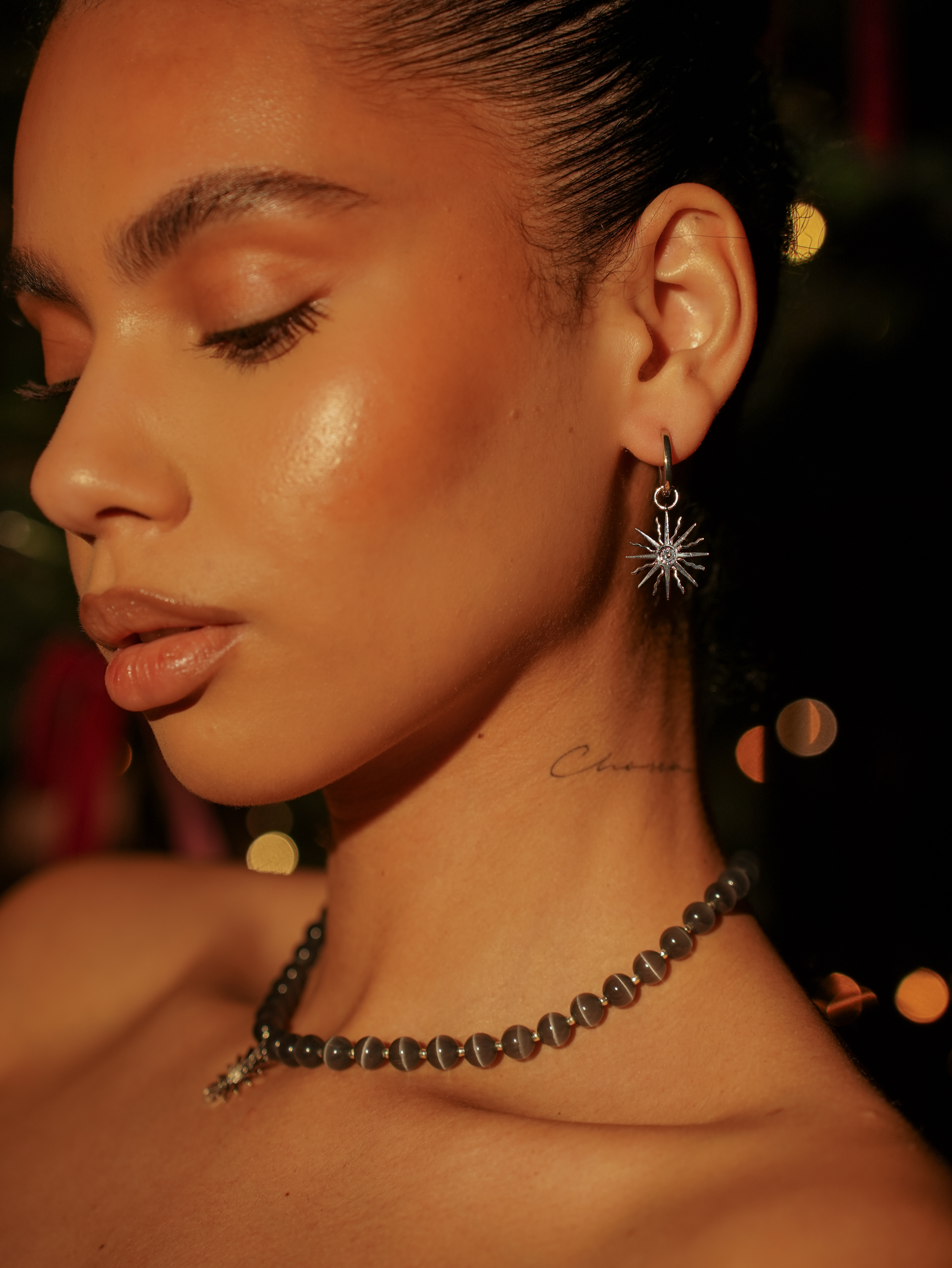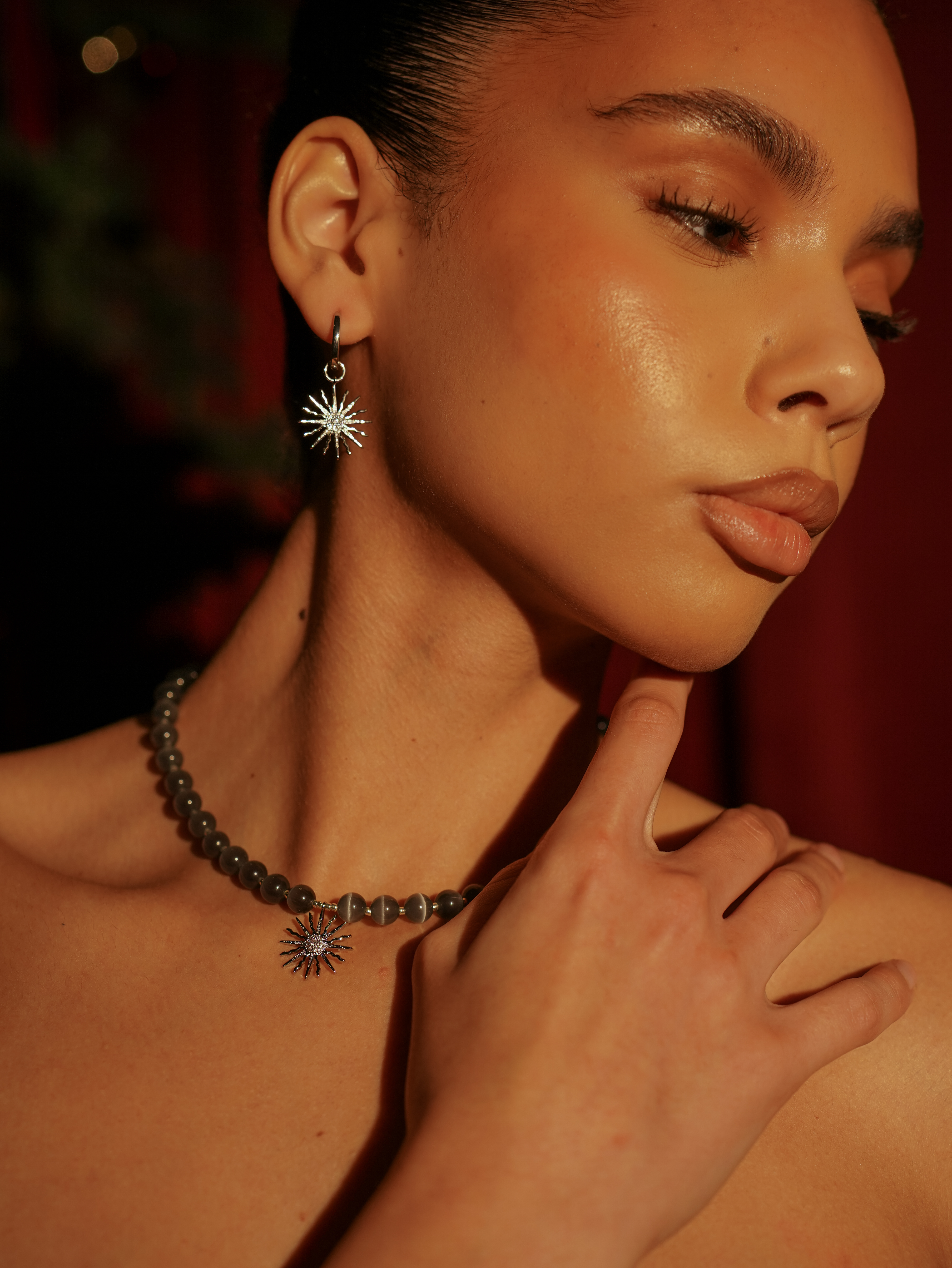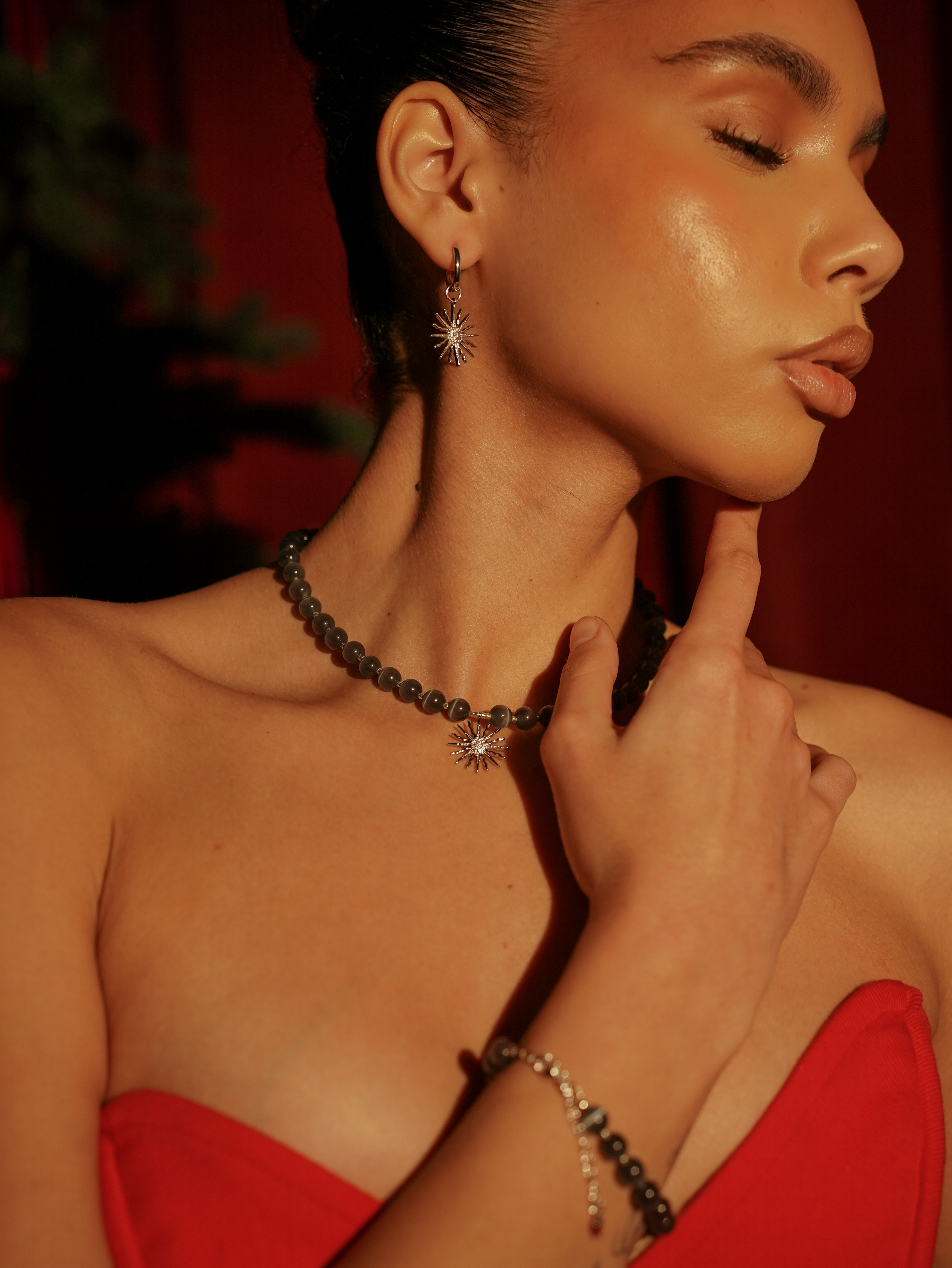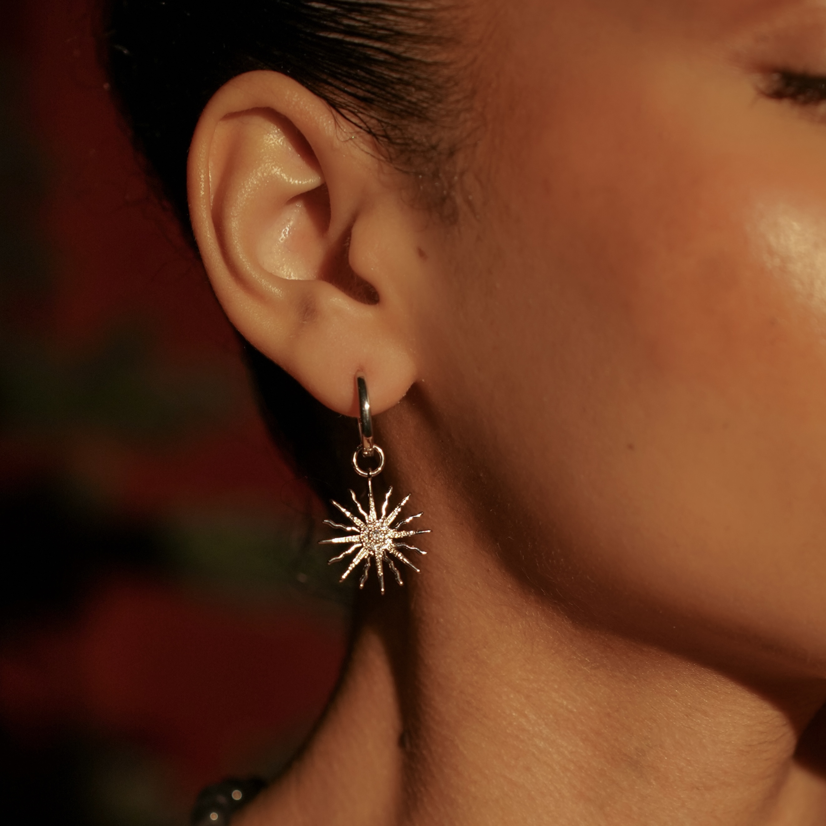 Елегантні сережки «Сяюче Різдво» — це вишукана прикраса, що уособлює святкове сяйво та теплу атмосферу зимових вечорів. Підвіска у формі сяйливої зірки, інкрустована фіанітами, створює ефект мерехтіння при кожному русі та підкреслює риси обличчя.