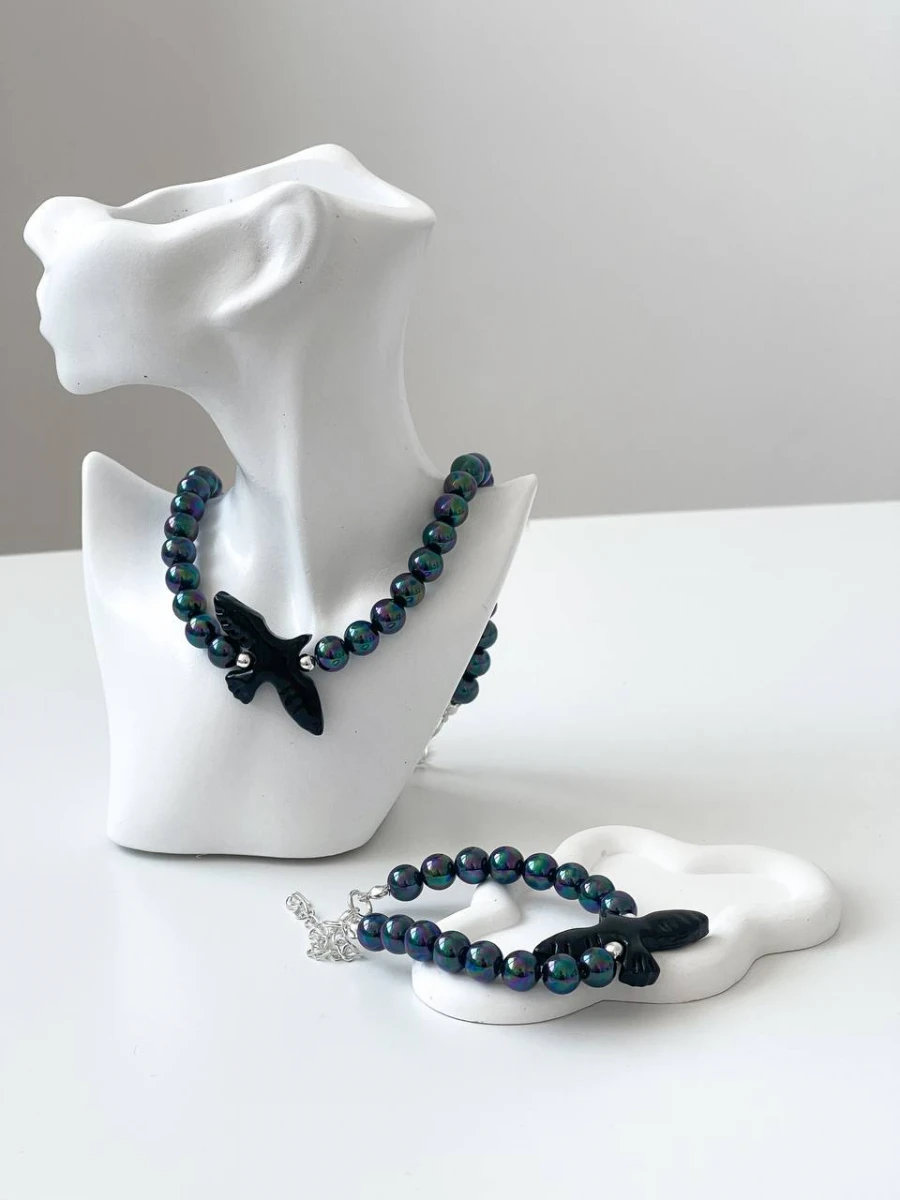 Набір "Black Горлиця" - це вишукане поєднання кольє та браслета, що підкреслить вашу красу та елегантність. Виконаний з якісних матеріалів, він стане улюбленим доповненням до будь-якого образу.