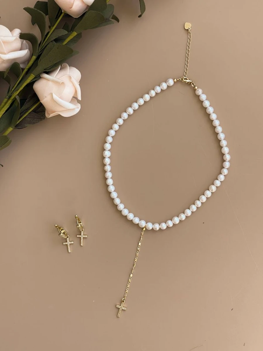 Разом кольє та сережки утворюють вишуканий сет, у якому поєднані духовна символіка та сучасна витонченість, створюючи прикрасу зі змістом і шармом.