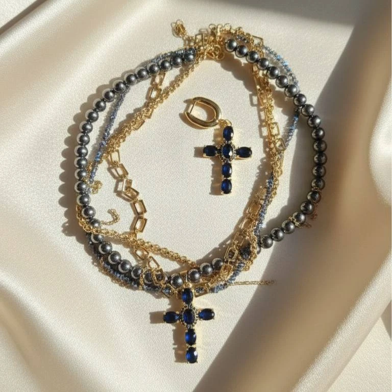 Сет "Deep Church" поєднує кольє та моно сережку, створюючи стильний і виразний образ для тих, хто цінує глибокі відтінки та символічні деталі.