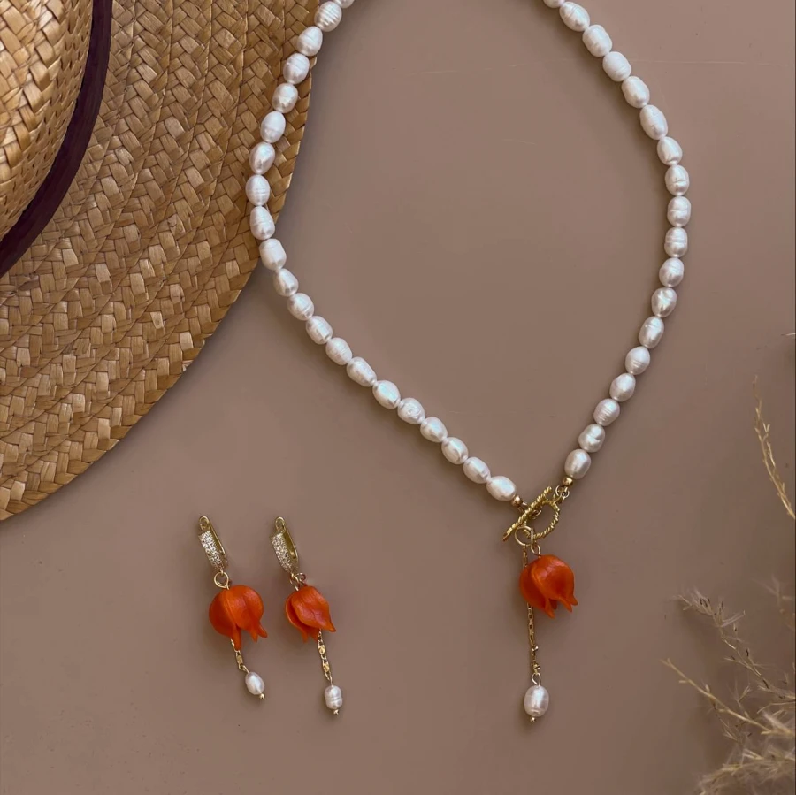 Вишуканий сет з перлами та фізалісом – яскравість і природна елегантність у кожній деталі.