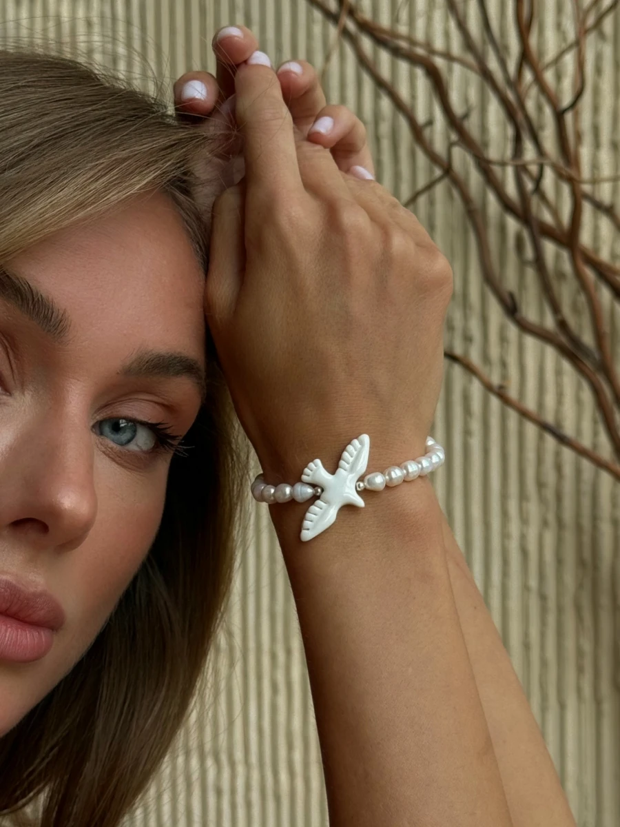 Сет "Горлиця" – це вишукане поєднання кольє та браслета, що підкреслить вашу жіночність та елегантність. Витончені прикраси додадуть вашому образу романтичності та легкості.