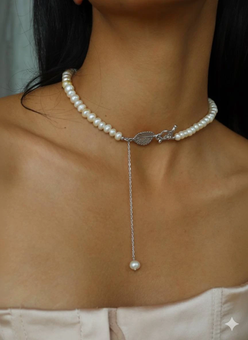 Сет “Silver Leaf” — це вишукане поєднання природної краси та сучасної елегантності. Перли кукурудза зі срібним покриттям створюють м’яке, шляхетне сяйво, яке гармонійно підкреслює витонченість образу.