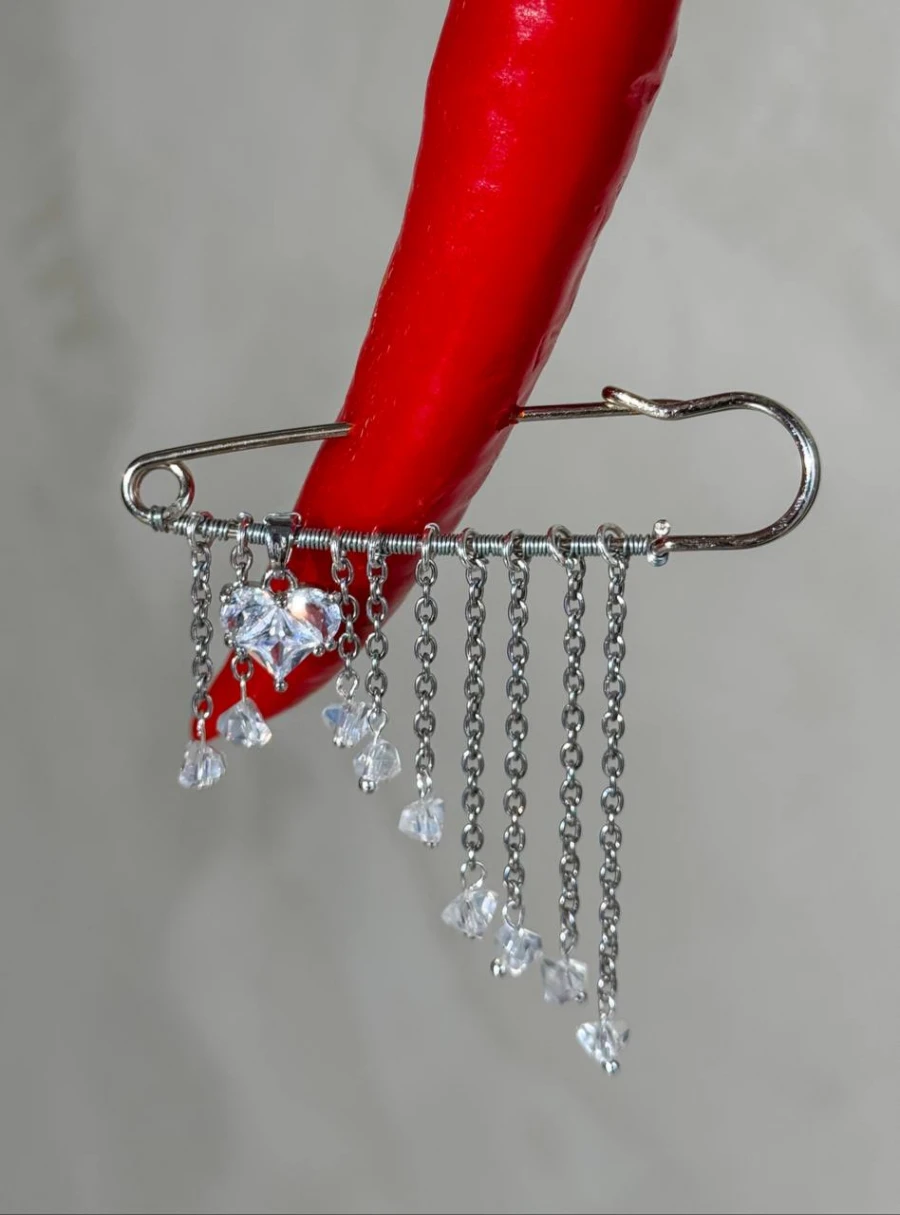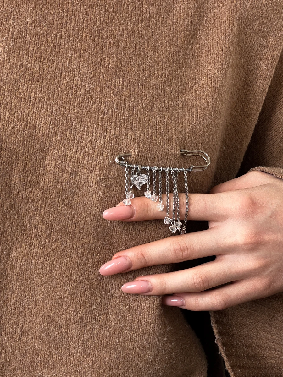 Шпилька "Silver Heart" — елегантний аксесуар, що додає розкоші будь-якому образу. Виготовлена з медсплаву з срібним покриттям, вона вражає витонченістю та блиском. Декорована склом та фіанітами, що додають елегантності та святковості. Ідеальний вибір для особливих подій або як стильний акцент у повсякденному вигляді.