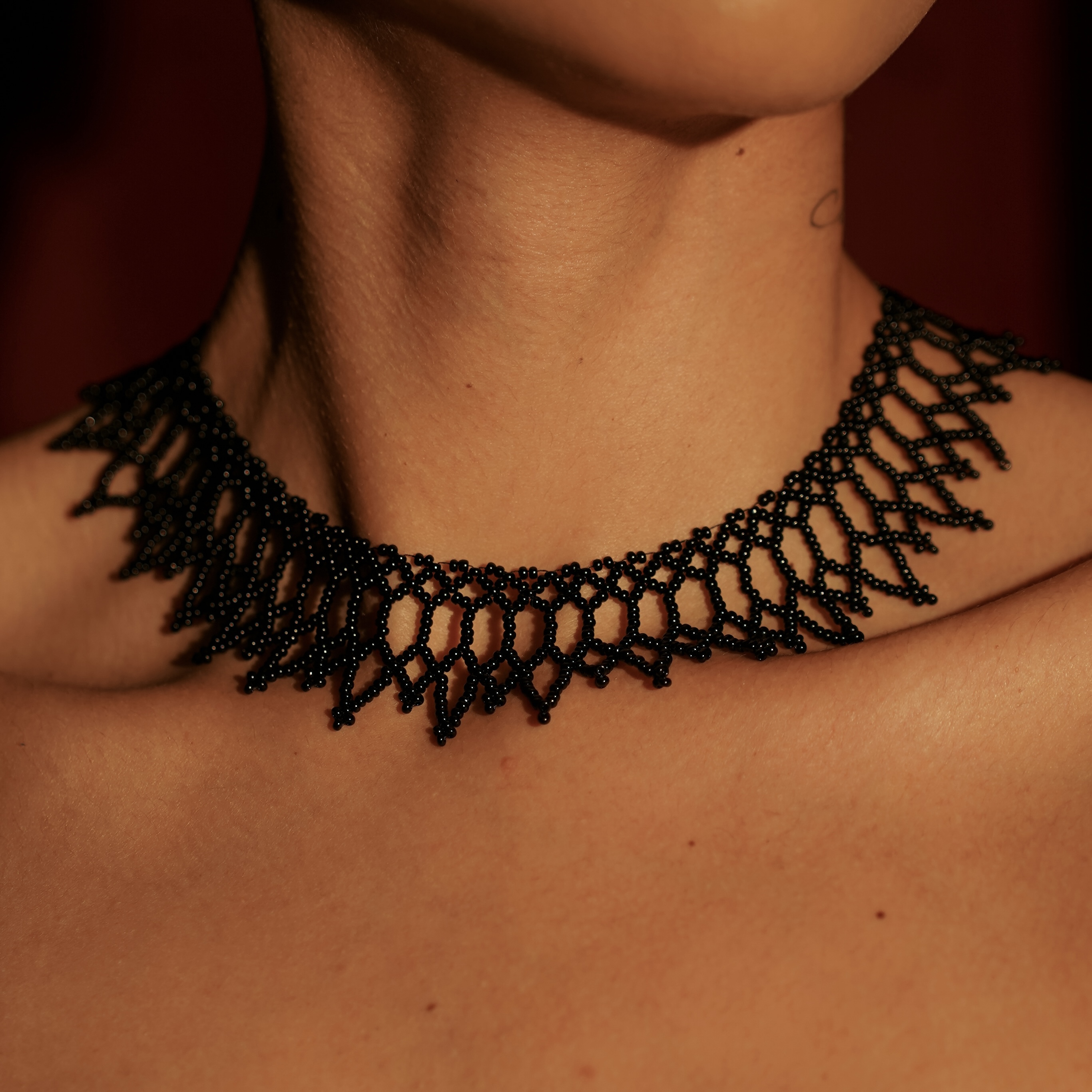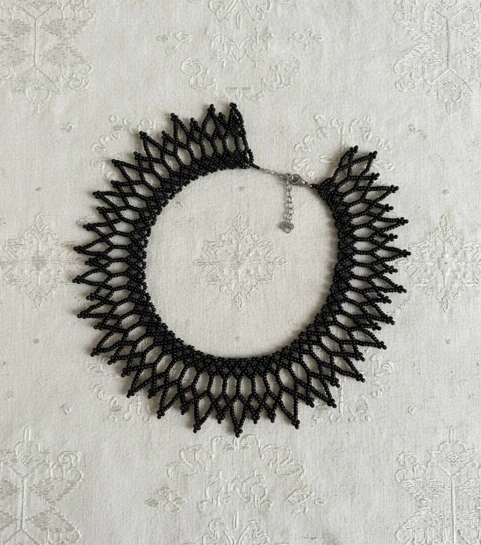 Глибока та стримано виразна силянка «Земля» — це прикраса, що символізує стабільність, силу коріння та зв’язок із природою. Лаконічний чорний японський бісер формує чіткий ажурний візерунок, який нагадує природні ритми, структури ґрунту та первинну гармонію.
